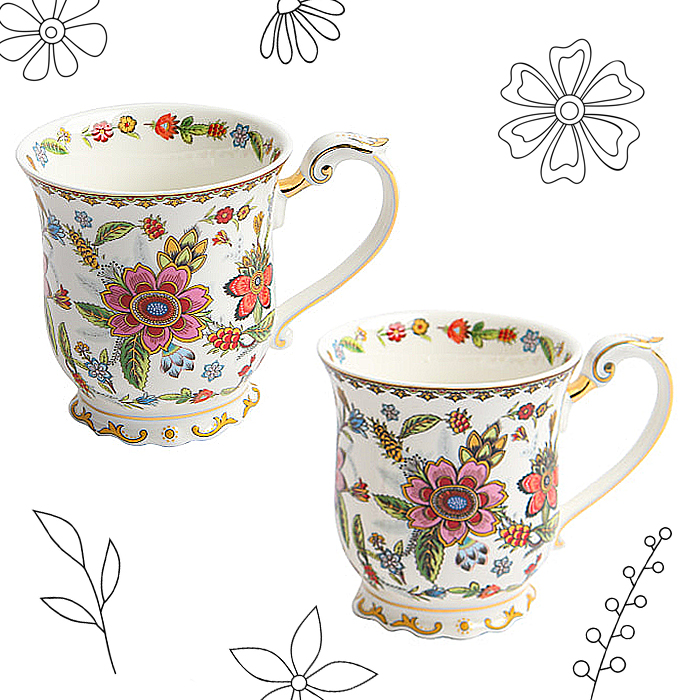 달리아꽃 머그 2세트, 엠보싱+입체+금박디자인