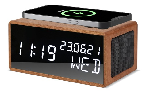 [우드쇼] R1501 블루투스 스피커 15W 고속 무선충전 리얼우드시계_샤빌리리얼우드