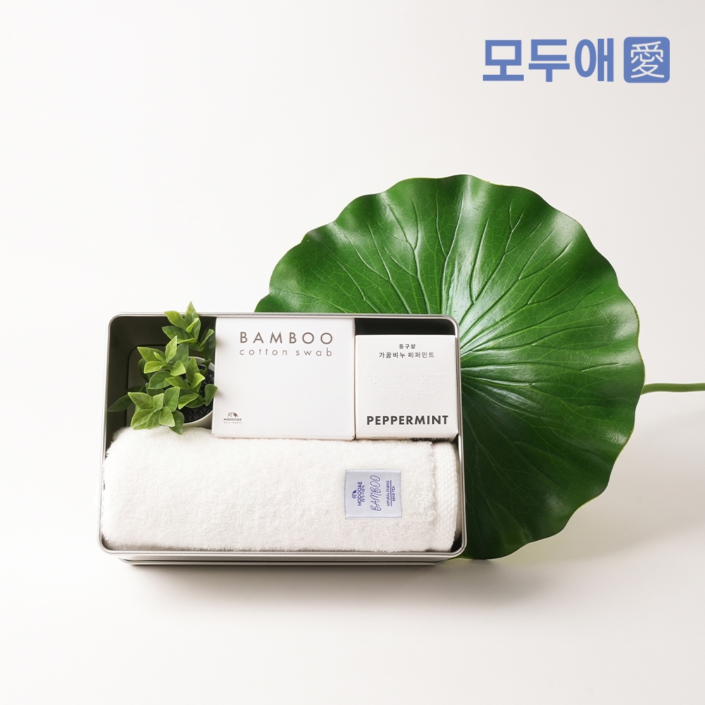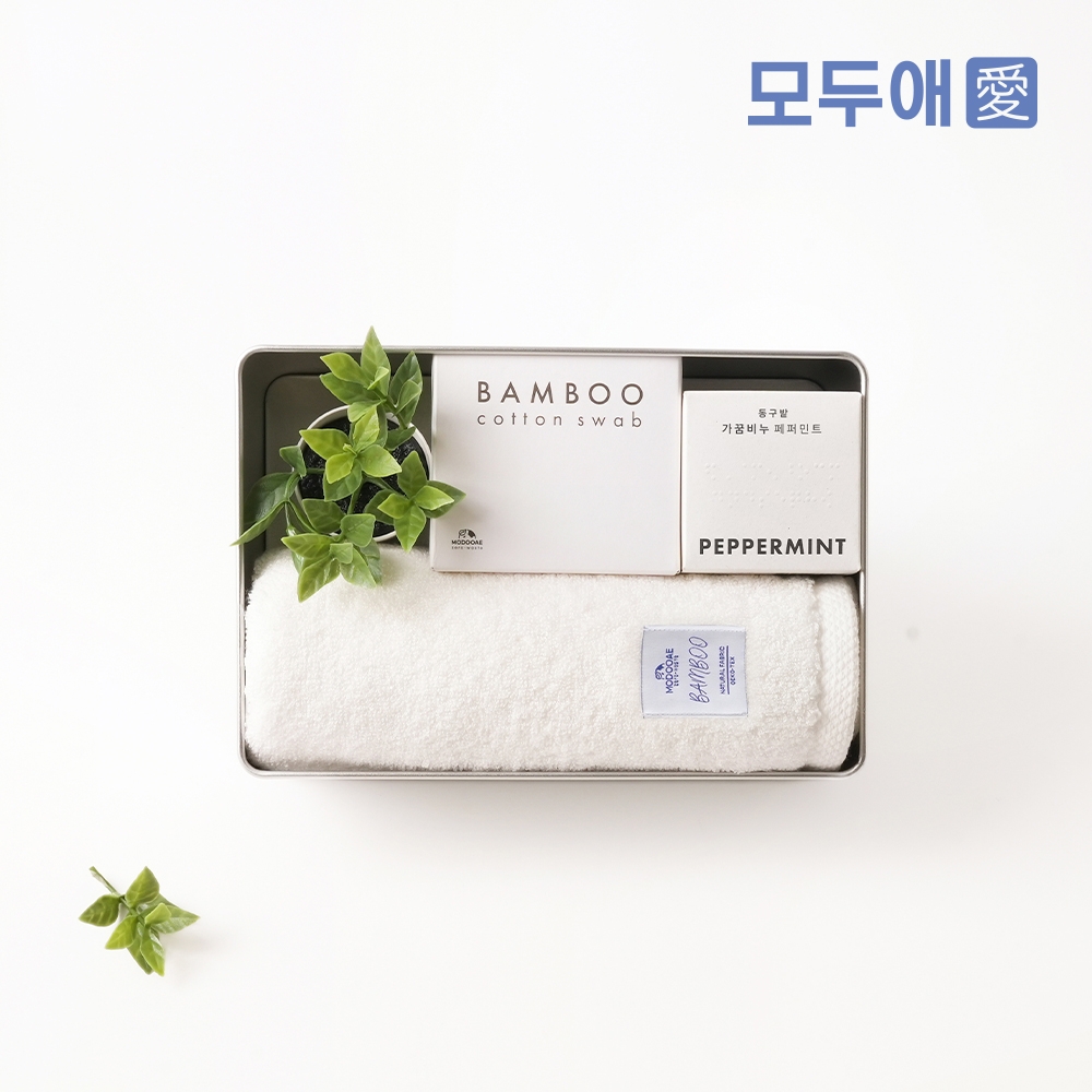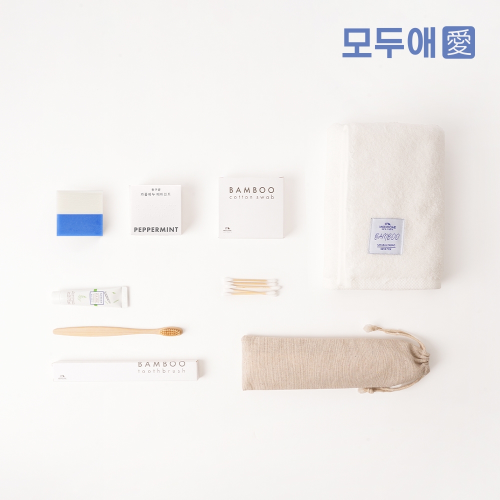 최소수량미만 제작가능여부 상담문의 인쇄방법 전사인쇄 / 띠지 / 스티커 / UV DTF 필름 제품재질 상세페이지참조 제품크기 패키지선택 + 모두애 칫솔치약세트 / 모두애 뱀부얀 수건 / 동구밭 가꿈비누(페퍼민트)