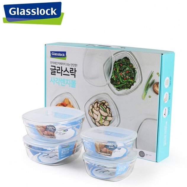 [글라스락] 강화 사각렌지볼 중소 4조