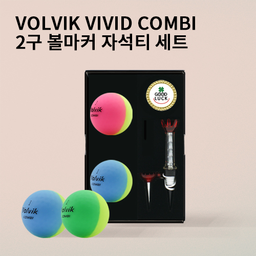 [NEW 볼빅] 비비드 콤비 2구 볼마커 자석티세트 (3pc) 반반 골프공 골프세트