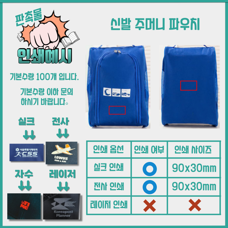 납품기간 시안 확정 후 4~5일 인쇄여부 가능 인쇄공간 상세페이지 참조 제품색상 상세페이지 참조